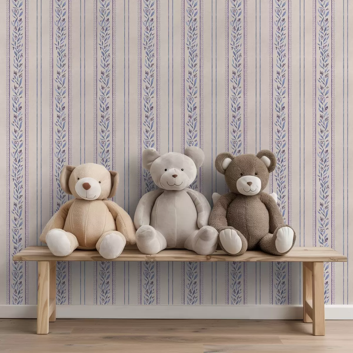Papel pintado Rayas verticales con viñetas lavanda, beige cálido Nr. a00813