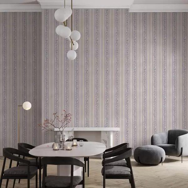Papel pintado Rayas verticales con viñetas lavanda, beige cálido Nr. a00813