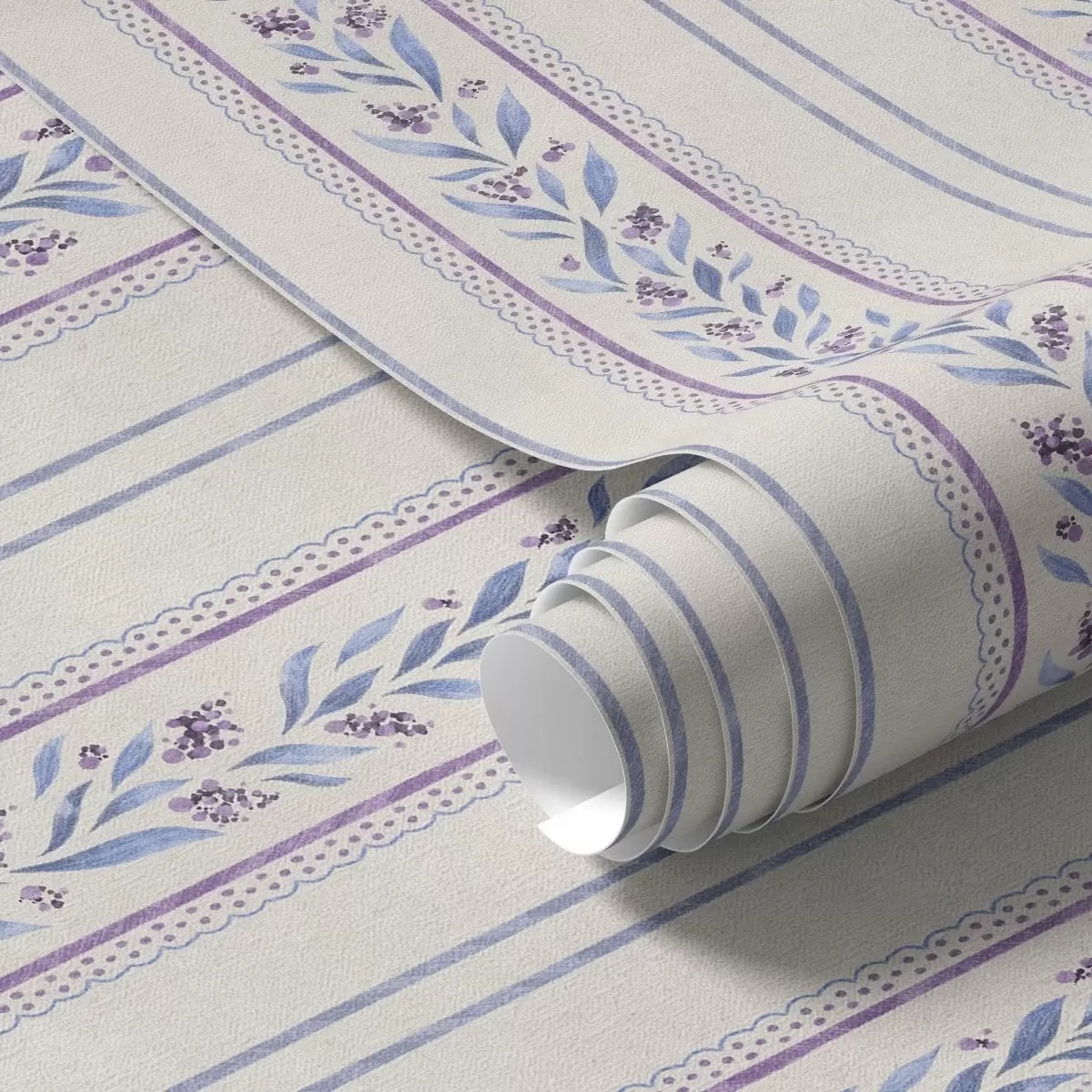 Papel pintado Rayas verticales con guirnaldas de lavanda, fondo beige Nr. a00813v1