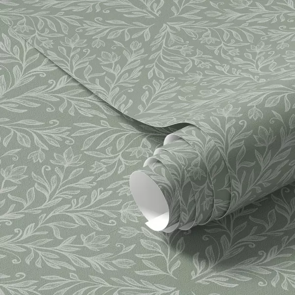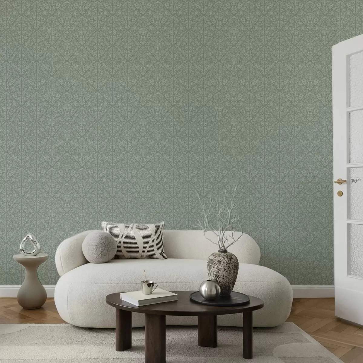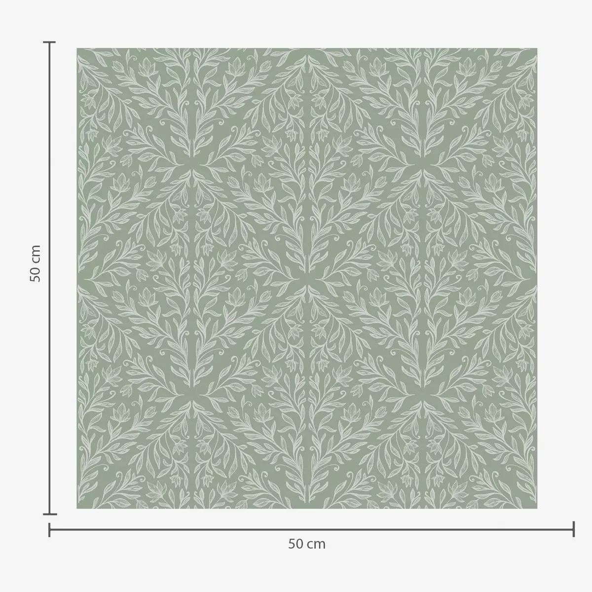 Papel pintado Damasco botánico sobre fondo menta-oliva Nr. a00815