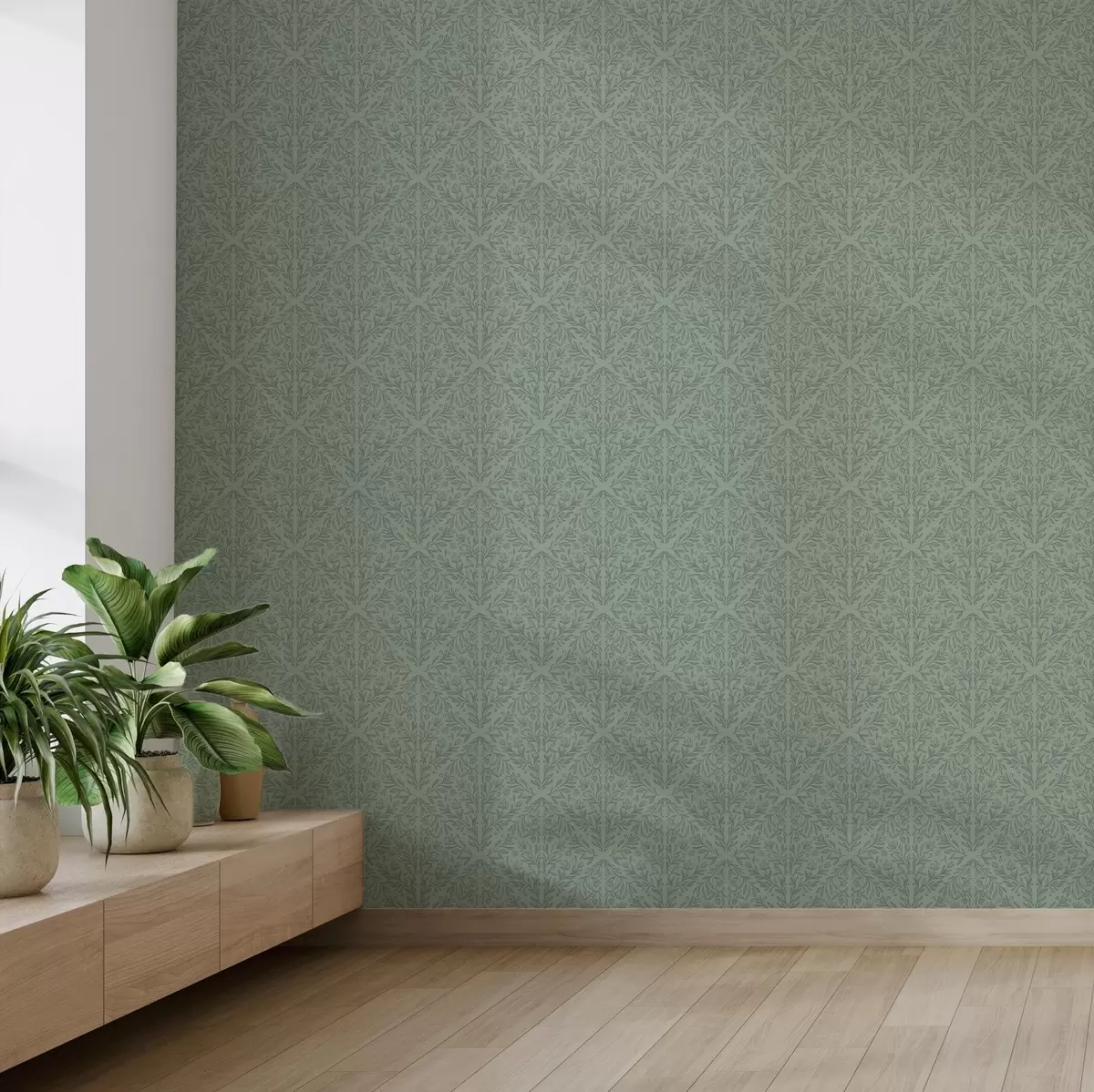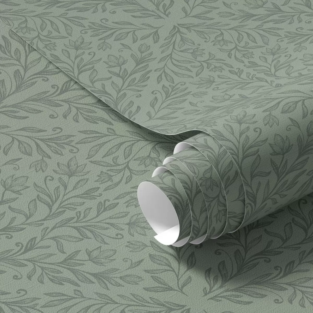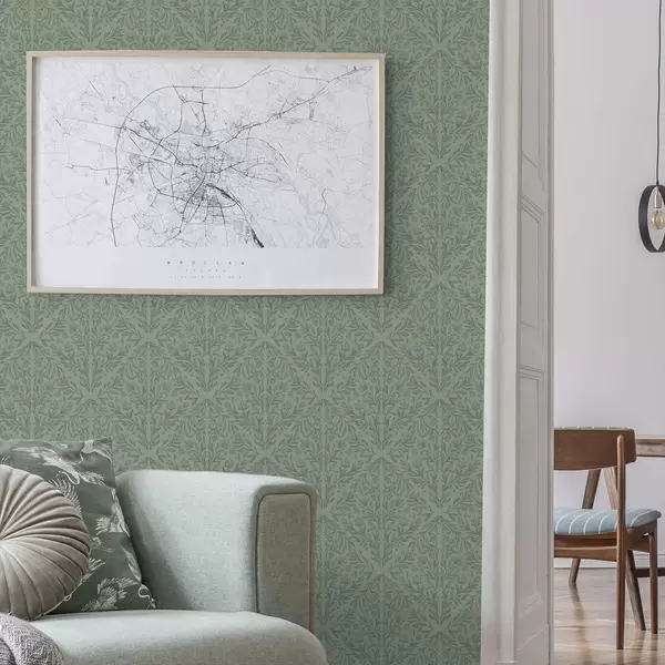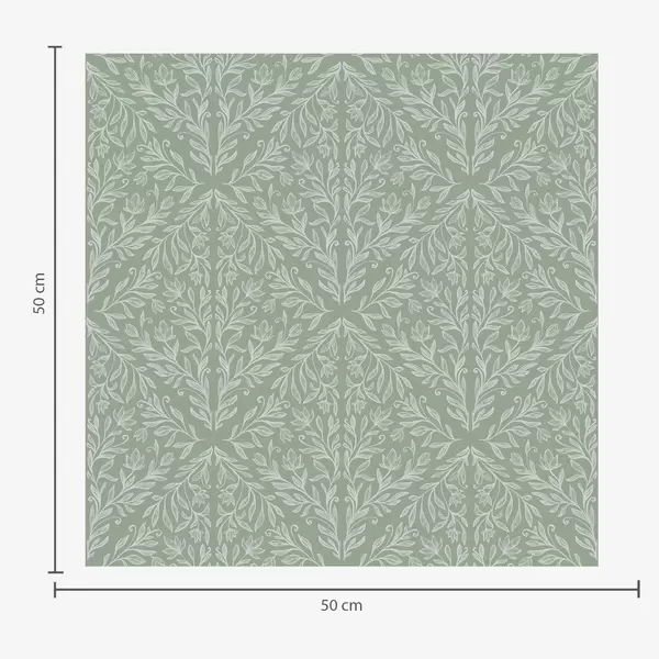 Papel pintado Damasco botánico fino en verde apagado Nr. a00815v1