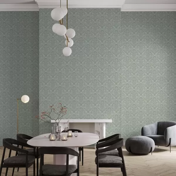 Papel pintado Lacy dispara sobre un fondo verde pastel, con una suave profundidad Nr. a00815v3
