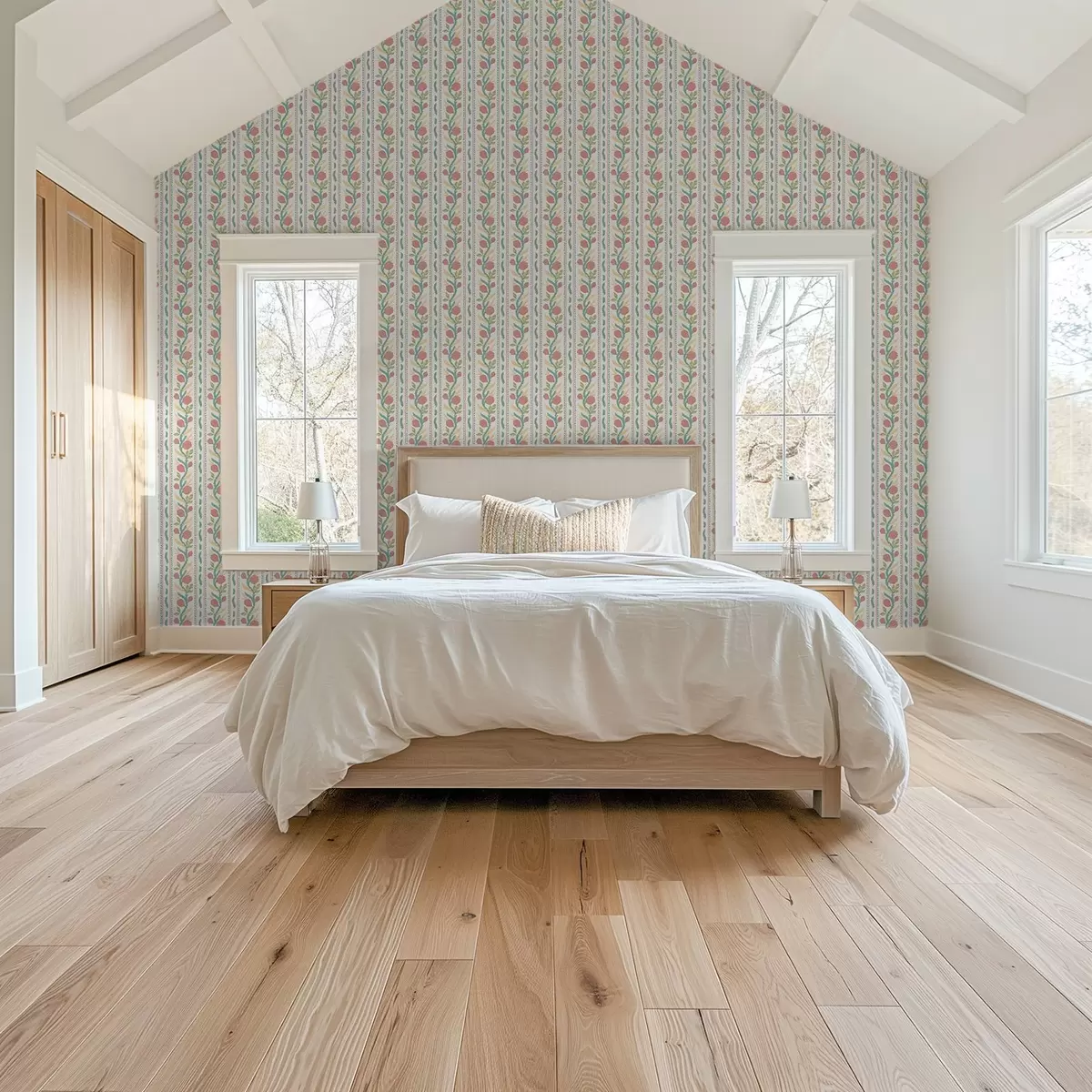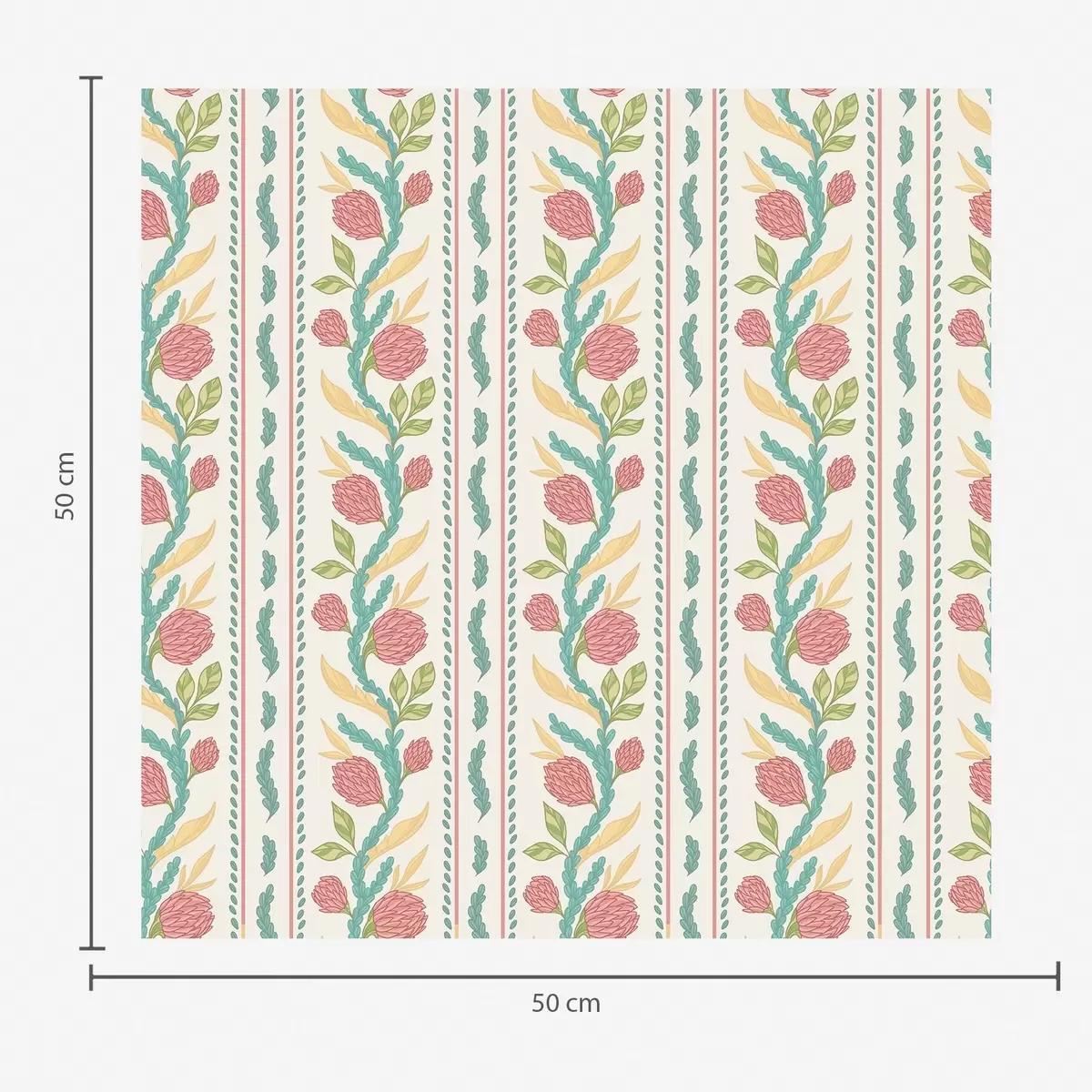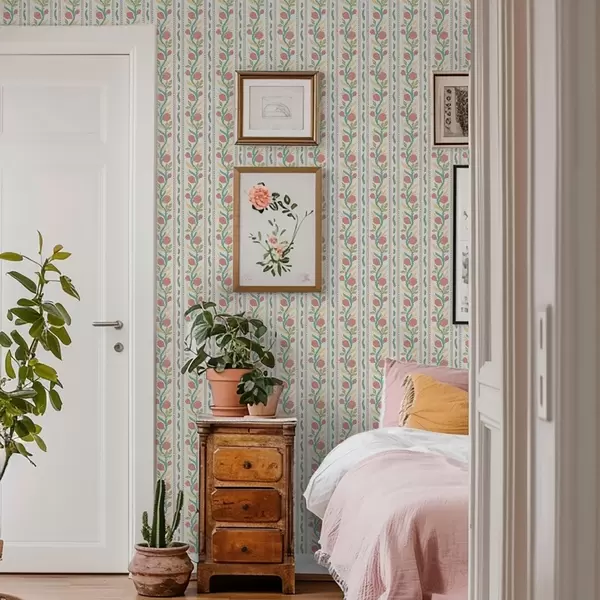 Papel pintado Rayas con capullos de coral sobre fondo crema claro. Nr. a00816v1
