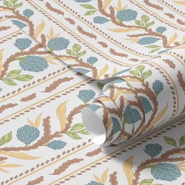 Papel pintado Rayas verticales con flores azules Nr. a00816v2