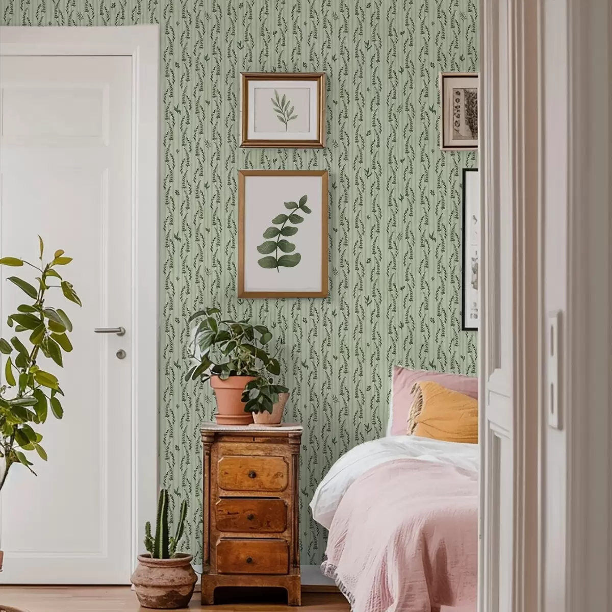 Papel pintado Hierbas verdes densas y brotes de menta con rayas Nr. a00819