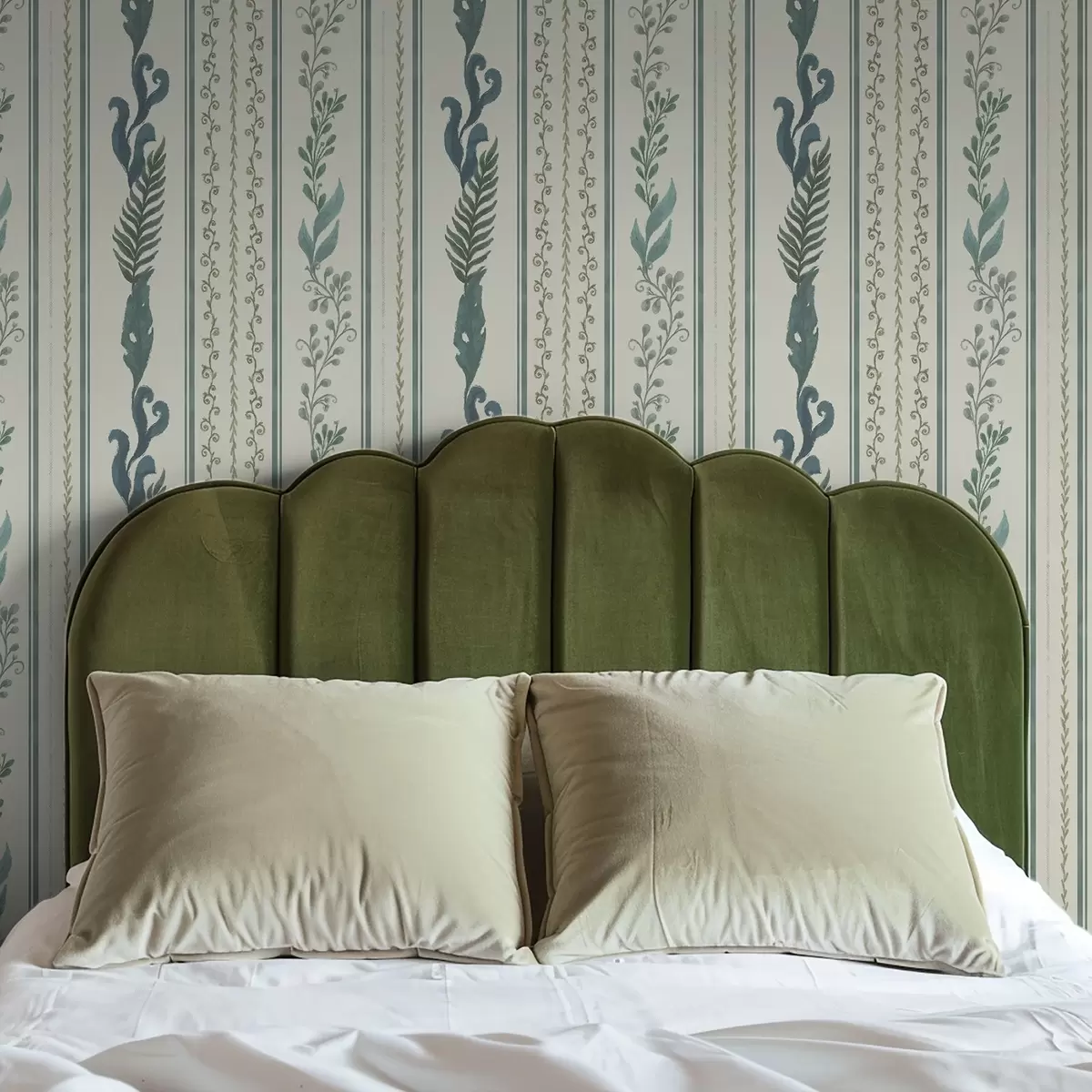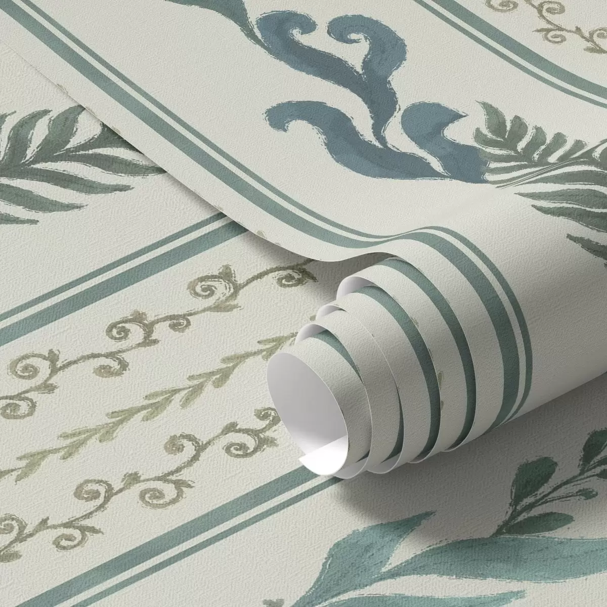 Papel pintado Rayas con ramificaciones y rizos sobre un fondo cálido y lechoso. Nr. a00823v2