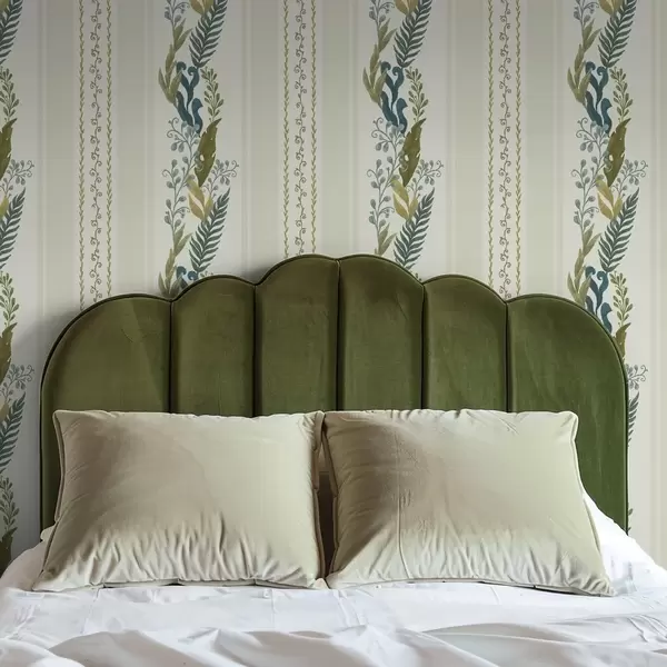 Papel pintado Rayas anchas con ramas pictóricas en tonos azul oliva Nr. a00825