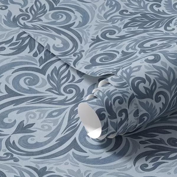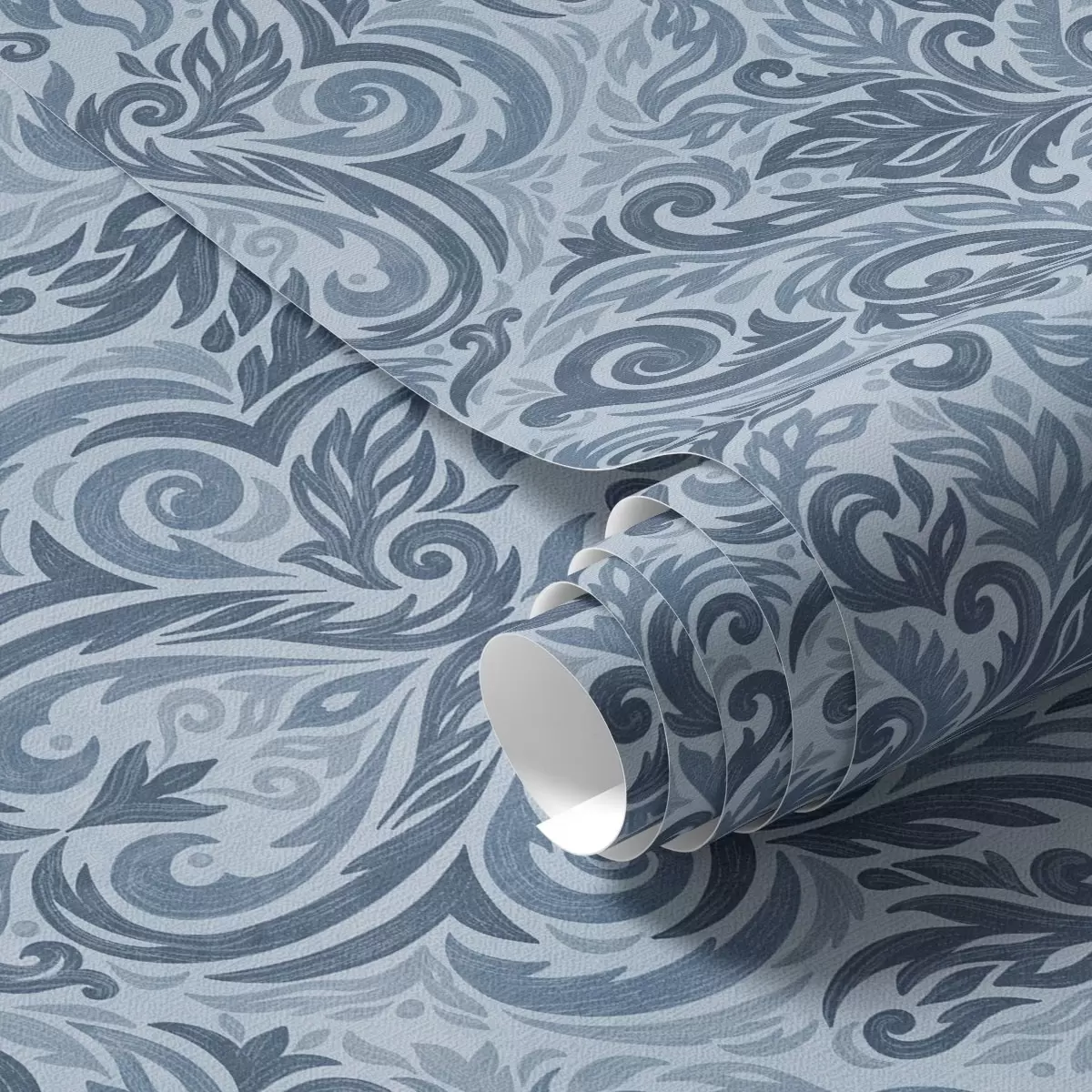 Papel pintado Damasco en tonos azules fríos, contraste más fuerte. Nr. a00826v2