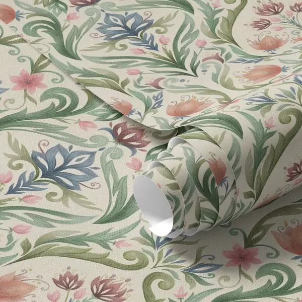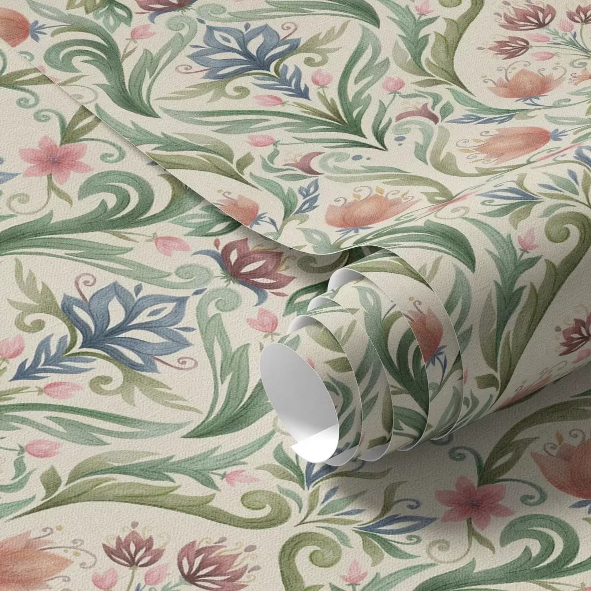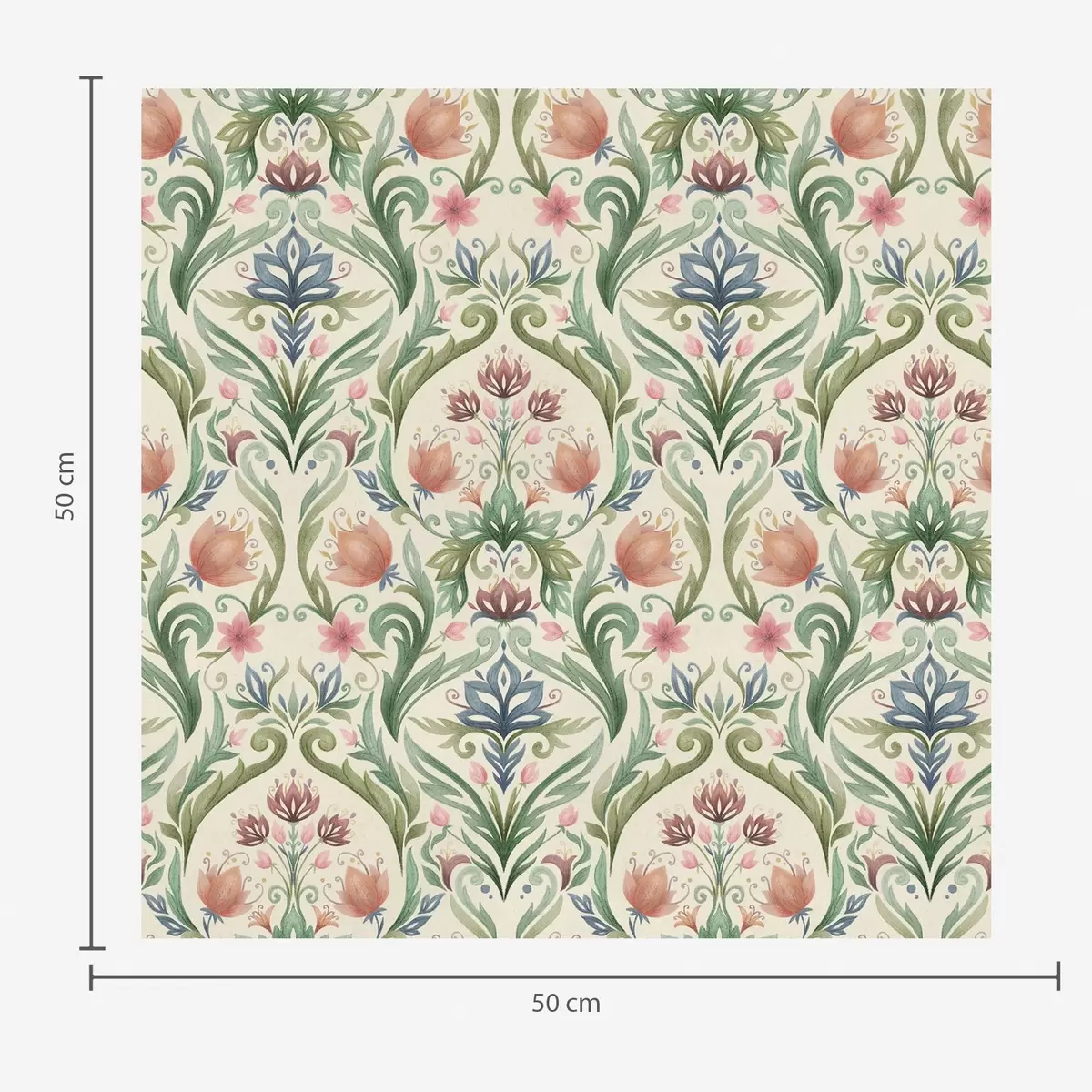 Papel pintado Adorno floral simétrico, terracota y verde Nr. a00827