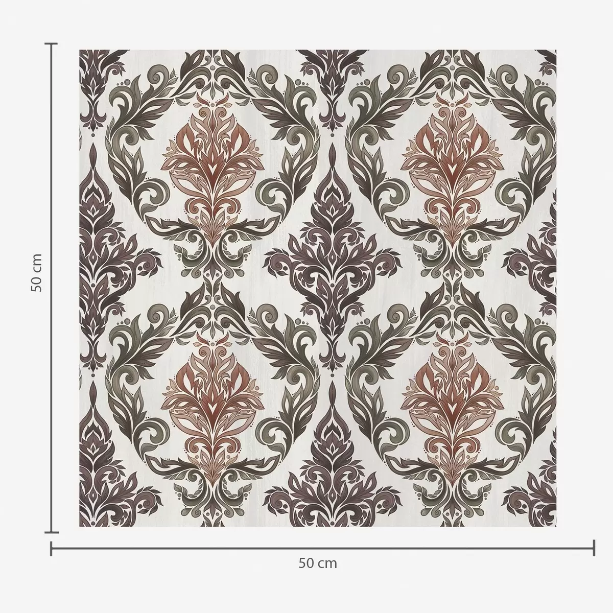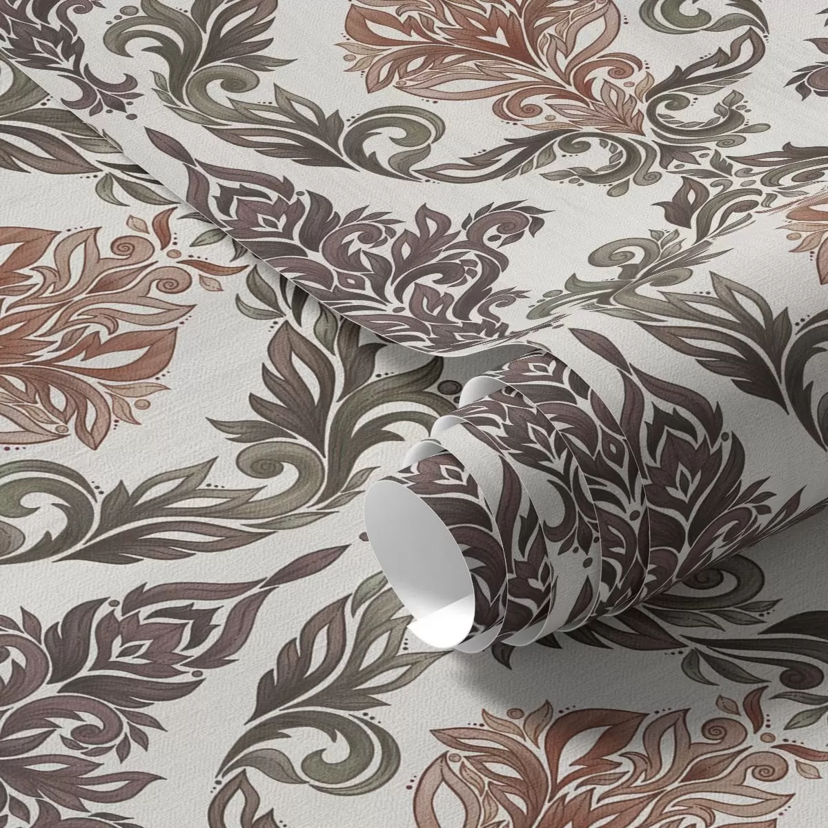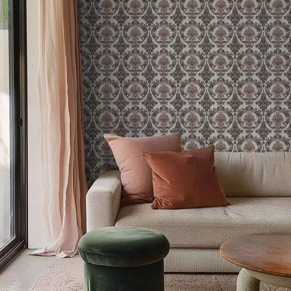 Papel pintado Damasco con detalles en marrón cobrizo sobre fondo claro. Nr. a00828v4