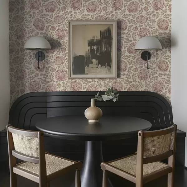 Papel pintado Crisantemos con toques de vino sobre fondo crema Nr. a00840v1