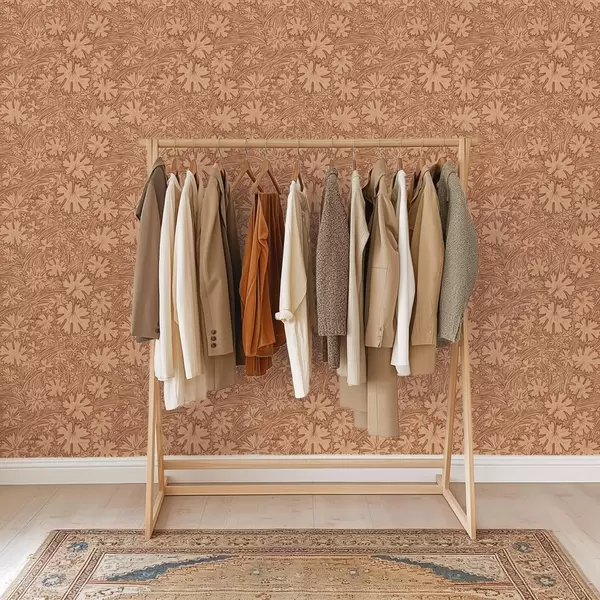 Papel pintado Hojas y hierbas del campo en una paleta de colores terracota y beige. Nr. a00847