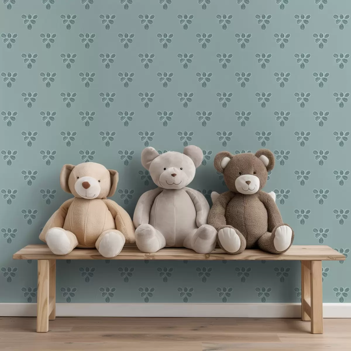 Papel pintado Pequeña repetición: tríos de hojas en azul frío. Nr. a00848v1