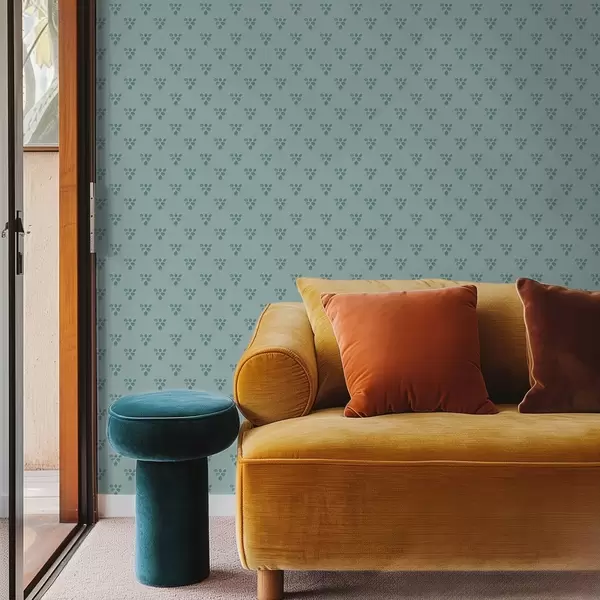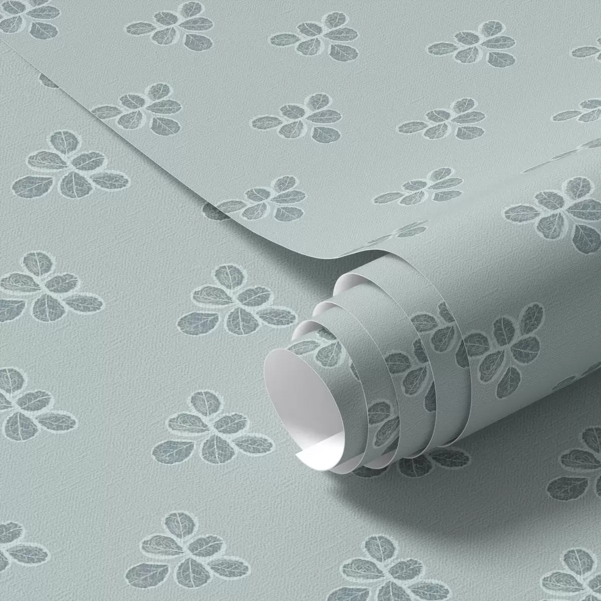 Papel pintado Pequeña repetición: tríos de hojas en azul frío. Nr. a00848v1