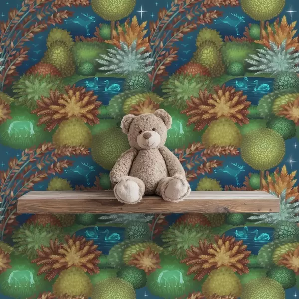 Papel pintado Jardín nocturno de cuento de hadas con un lago y animales luminosos. Nr. a00851