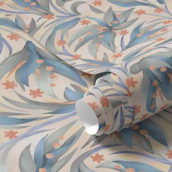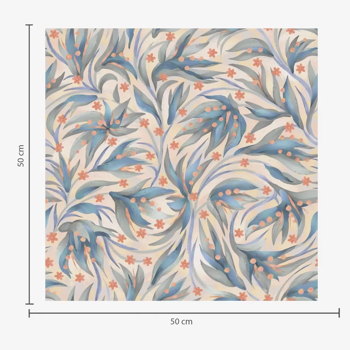 Papel pintado Follaje azul abstracto con flores coralinas Nr. a00852