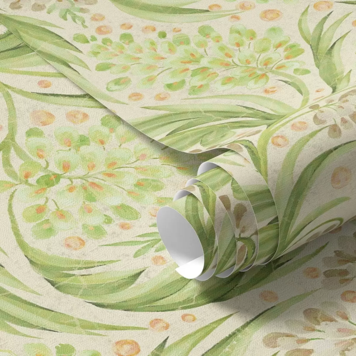 Papel pintado Motivo floral ligero en suaves tonos verdes. Nr. a00853