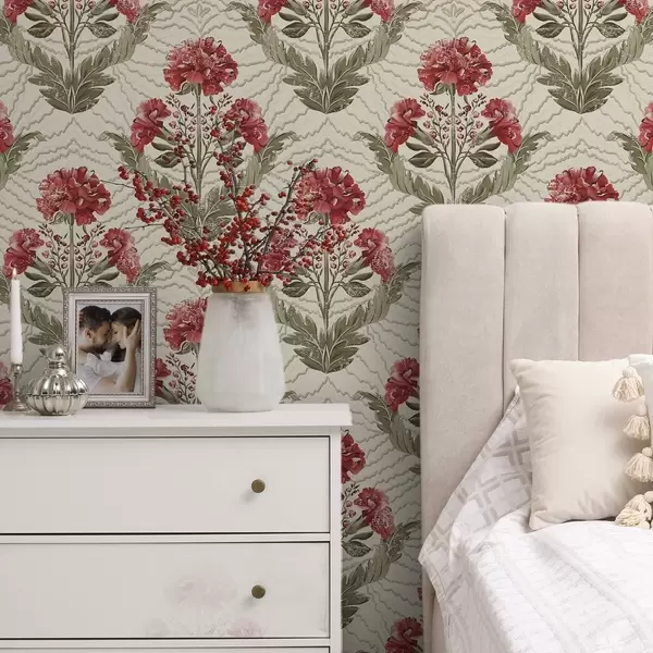 Papel pintado Grandes peonías rojas con fondo gráfico, fondo crema Nr. a00857