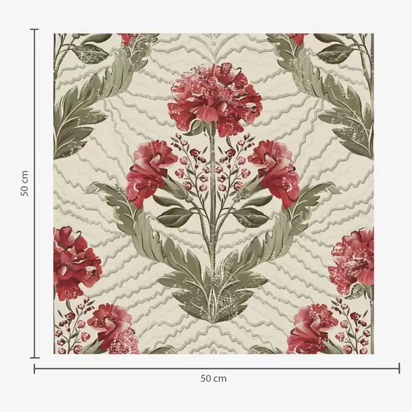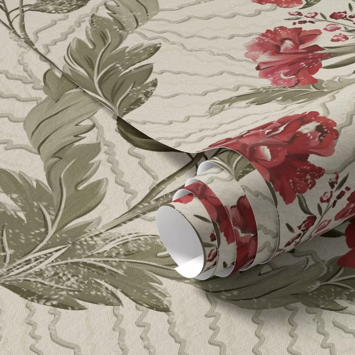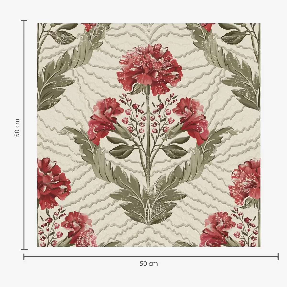 Papel pintado Grandes peonías rojas con fondo gráfico, fondo crema Nr. a00857
