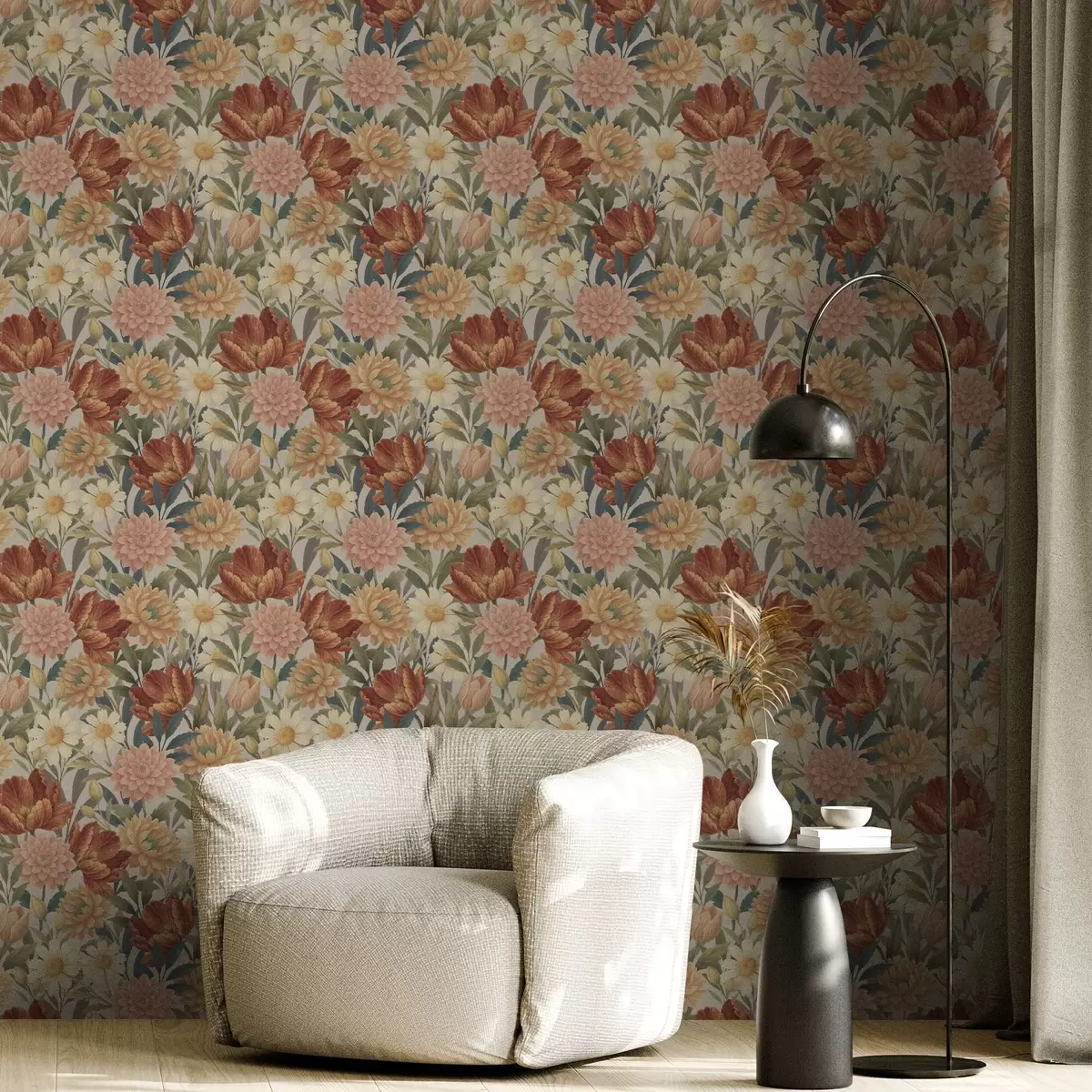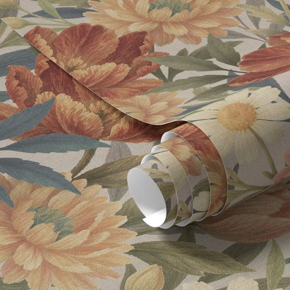 Papel pintado Flores vintage de jardín en cálidos tonos terracota y melocotón. Nr. a00874