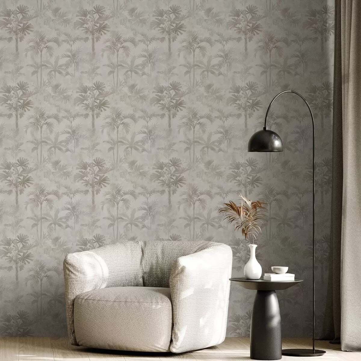 Papel pintado Palmeral brumoso en cálidos tonos beige Nr. a00881