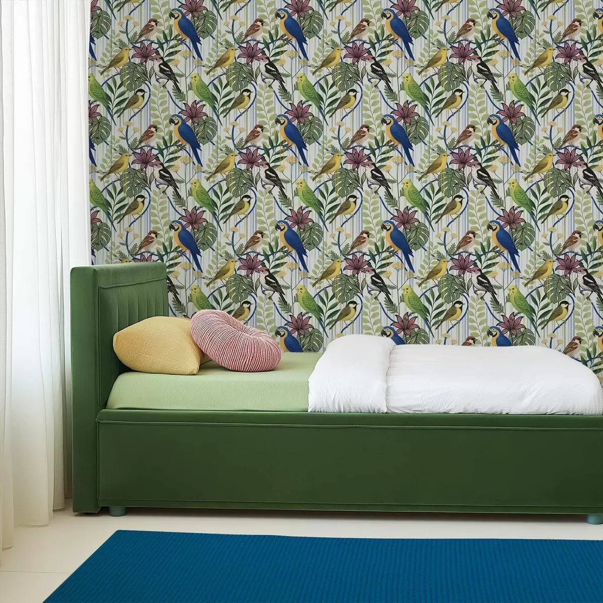 Papel pintado Alegres aves exóticas entre la vegetación tropical Nr. a00887