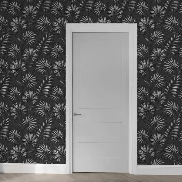 Papel pintado Hojas de palmera blancas y negras sobre fondo oscuro Nr. a00891