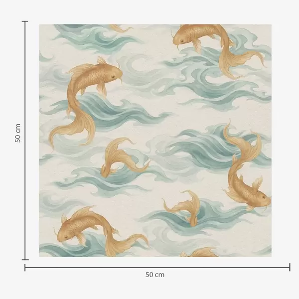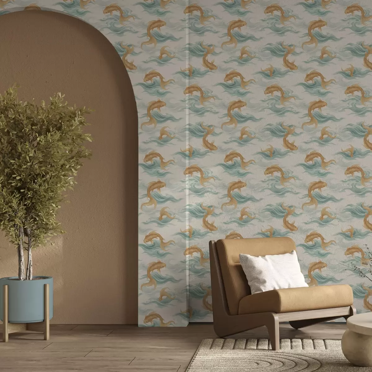 Papel pintado Peces koi ámbar nadando entre suaves olas turquesas. Nr. a00894
