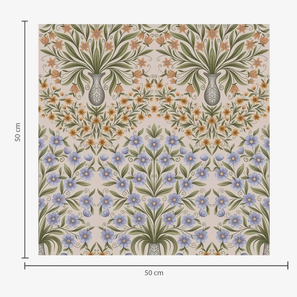 Papel pintado Jarrones populares con flores azules y hojas de olivo sobre fondo rosado. Nr. a00900