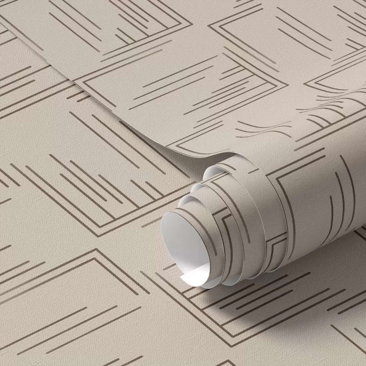 Papel pintado Grandes cuadrados de cacao con rellenos de líneas variadas, arena Nr. a00913