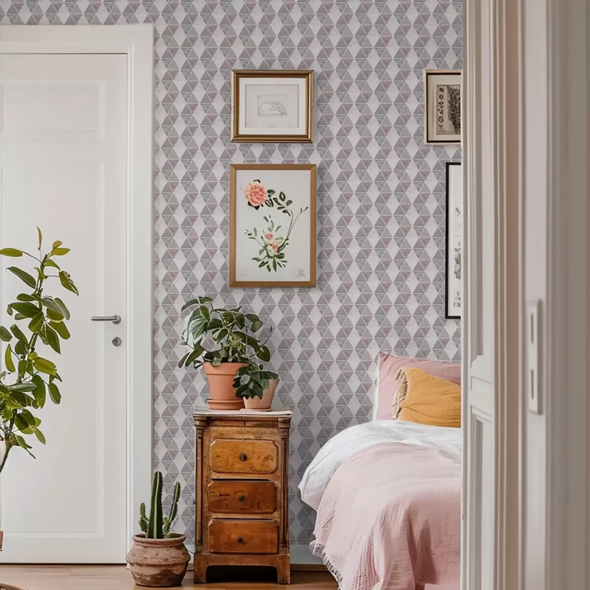 Papel pintado Triángulos suaves en tonos gris-rosa y empolvados. Nr. a00918