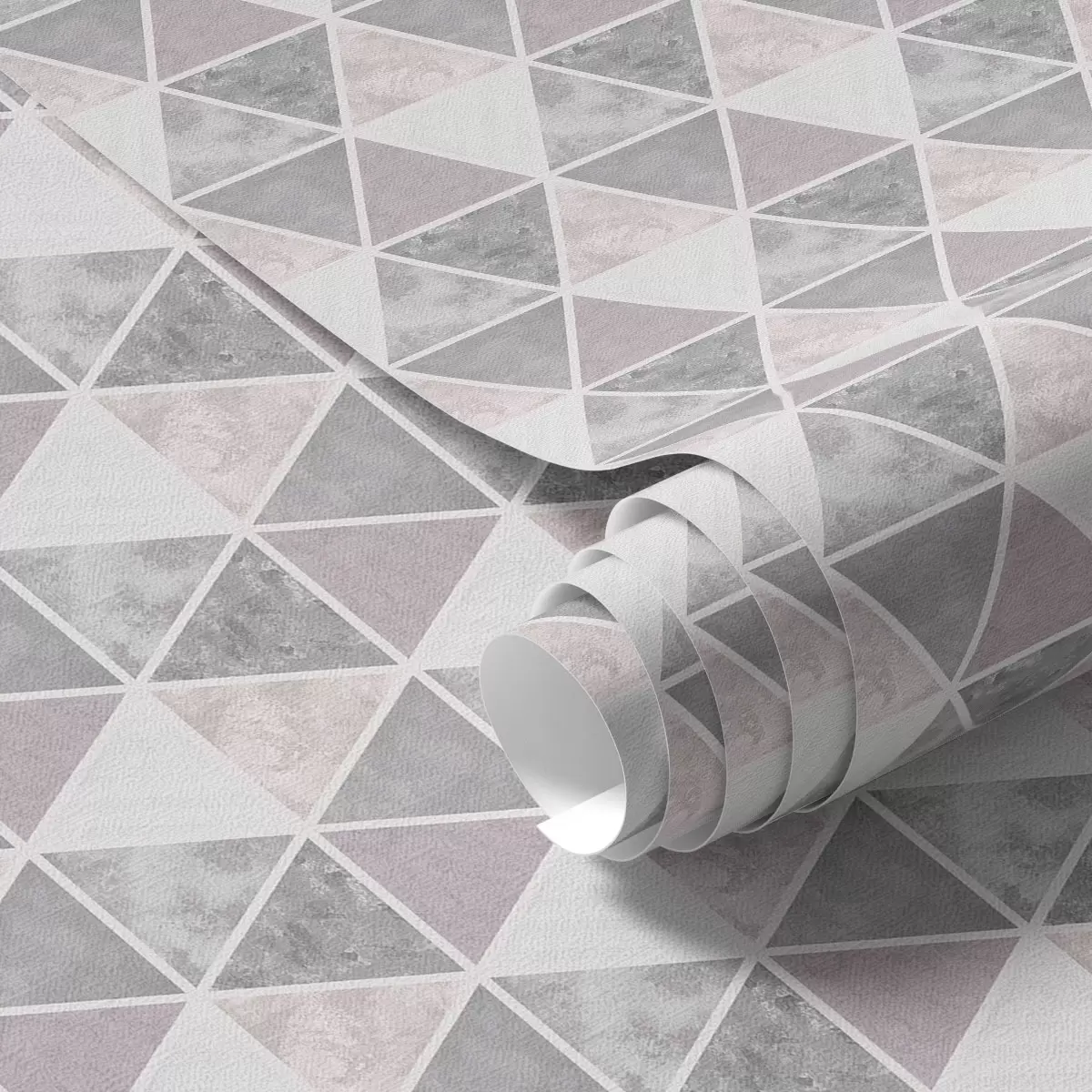 Papel pintado Patrón geométrico de triángulos en tonos grises y empolvados. Nr. a00920