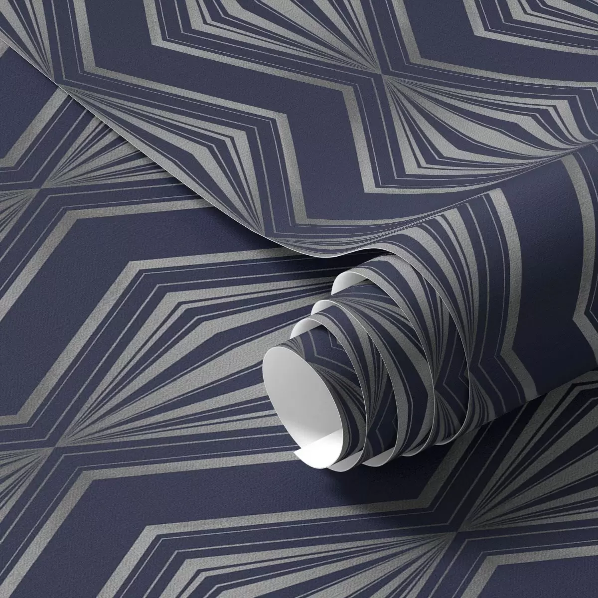 Papel pintado Diamantes geométricos en forma de rayos sobre un fondo azul oscuro. Nr. a00925