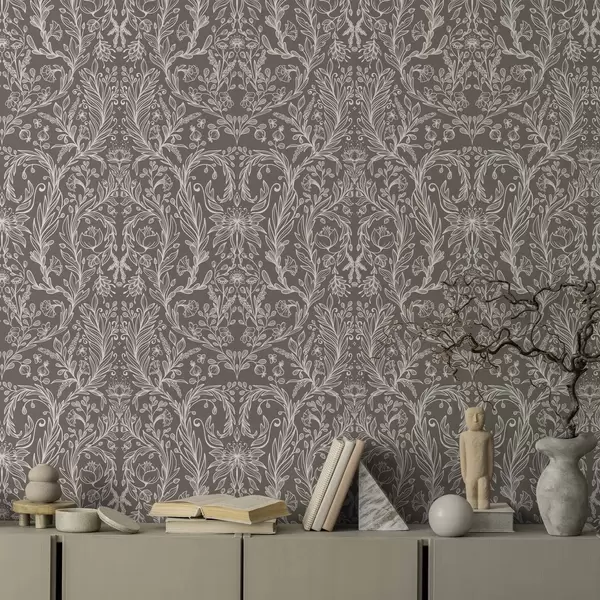 Papel pintado Estampado botánico monocromático en marrón cálido Nr. a00929v2
