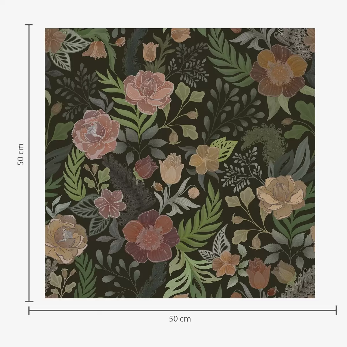 Papel pintado Ricas flores y vegetación sobre un fondo oscuro intenso. Nr. a00932