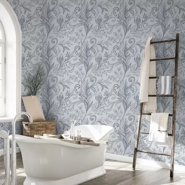 Papel pintado Hojas ligeramente rizadas de color azul hielo con textura de lápiz Nr. a00935v1