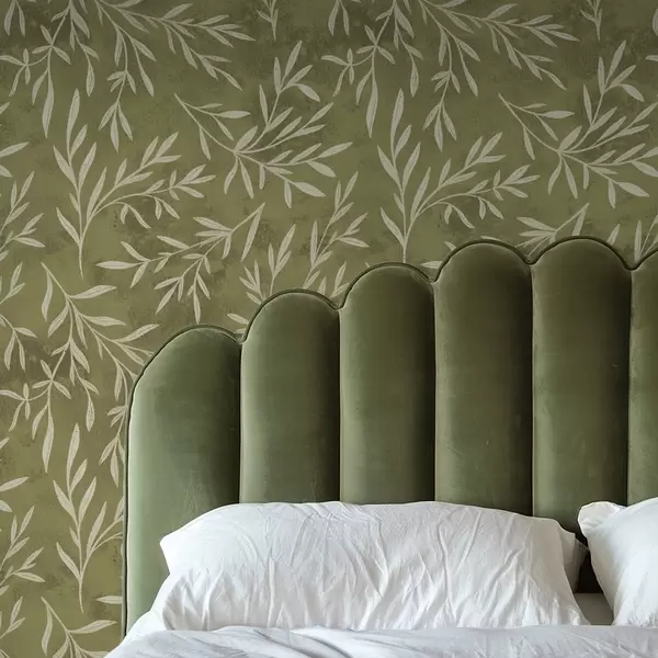 Papel pintado Ramitas de color blanco crema sobre un fondo cálido con textura oliva Nr. a00936v1