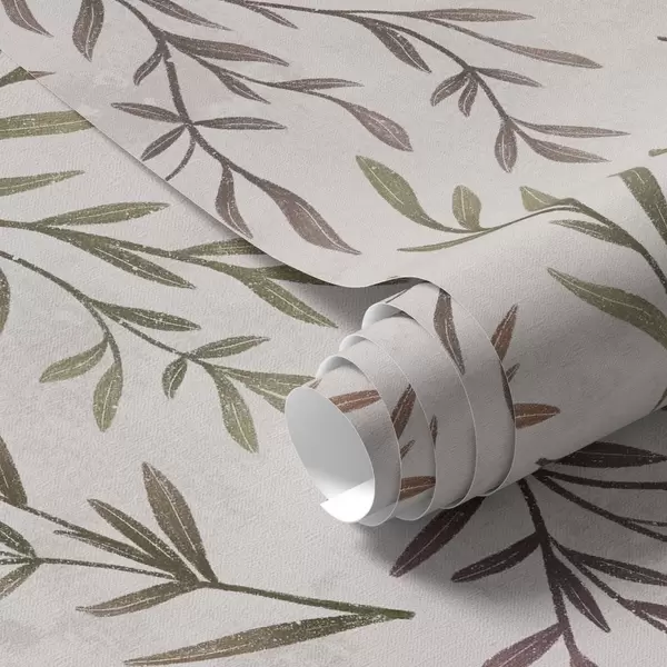 Papel pintado Ramitas multicolores con hojas sobre un fondo claro. Nr. a00936v3