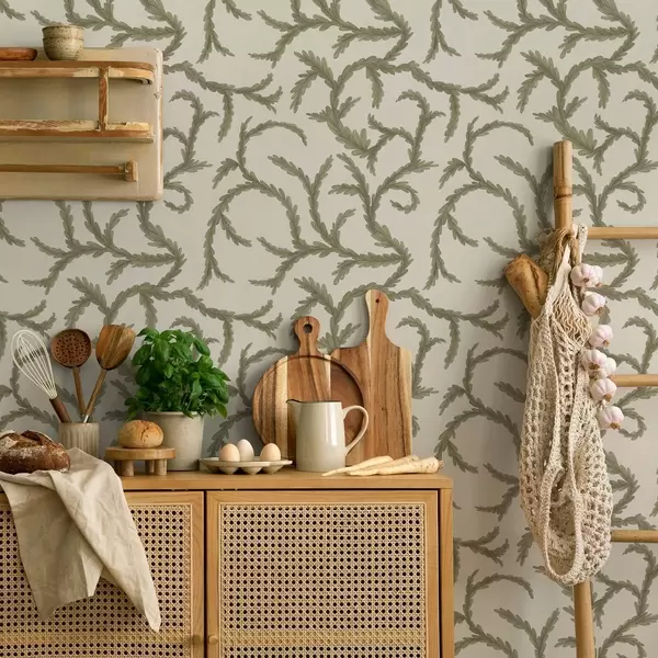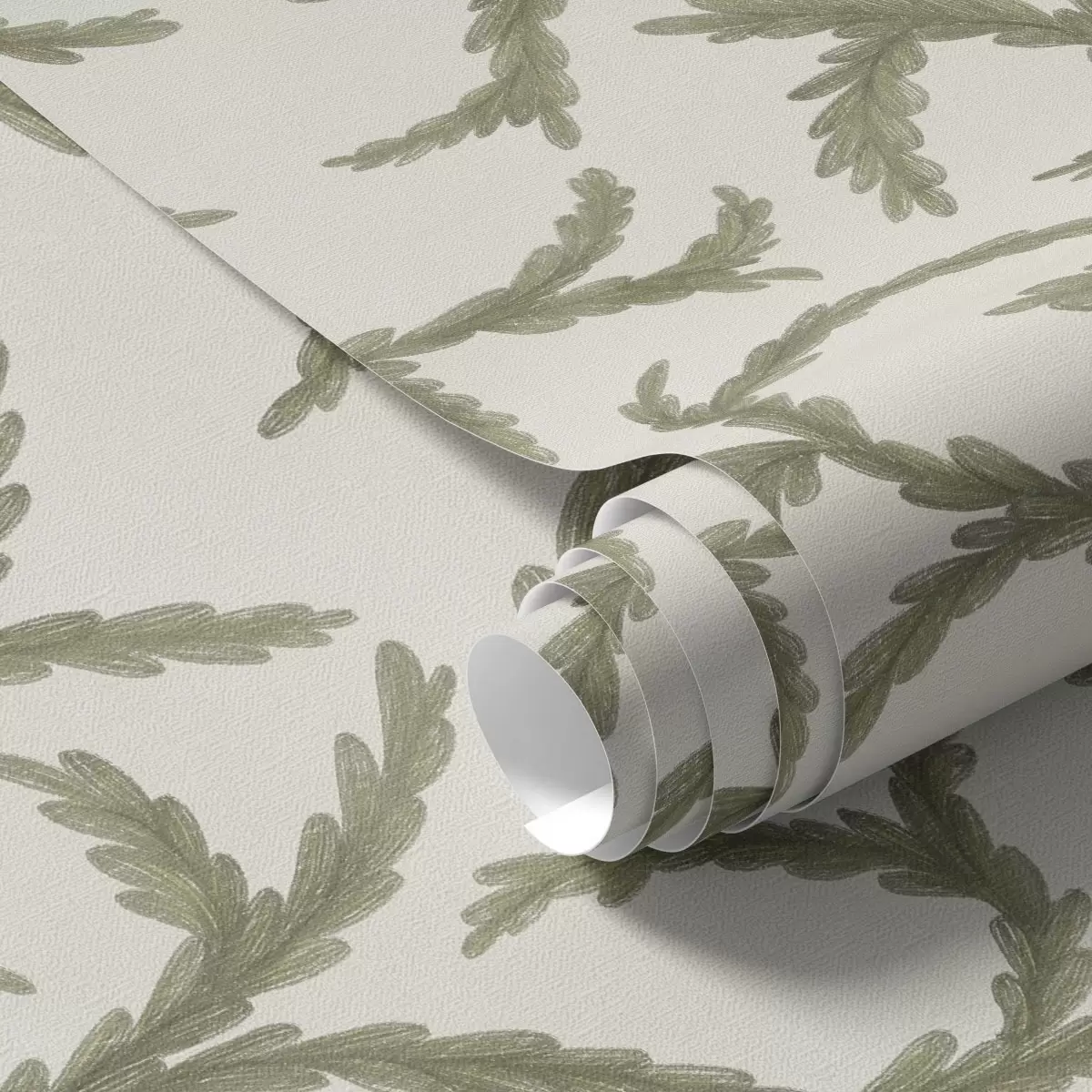 Papel pintado Suaves rizos verdes de coníferas sobre un fondo claro. Nr. a00938