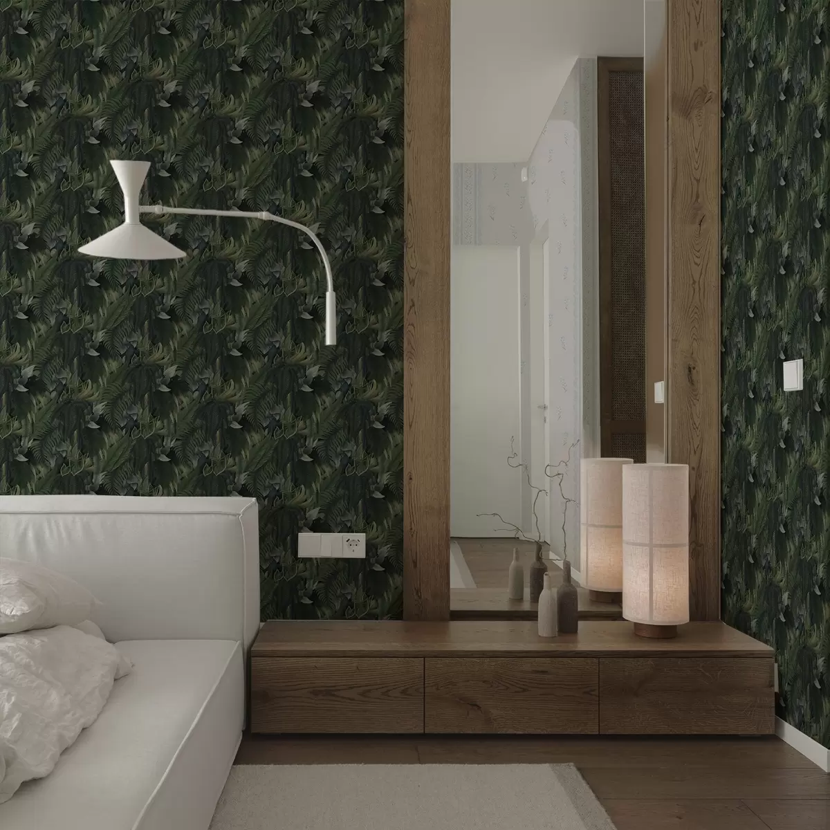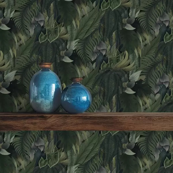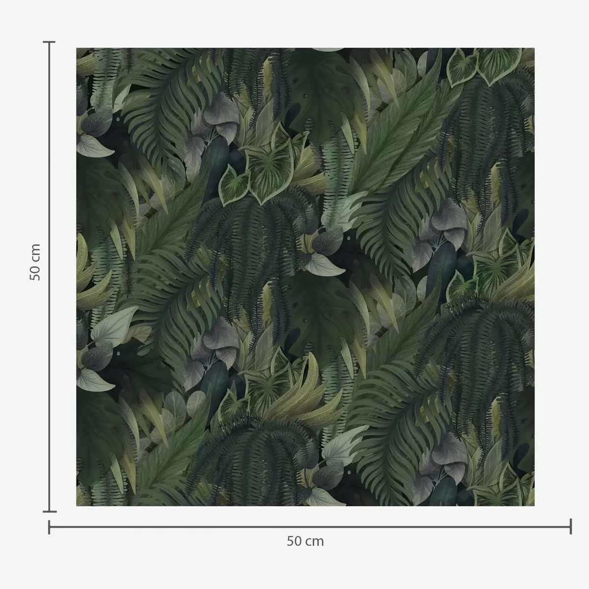 Papel pintado Denso follaje tropical en matorrales de color verde intenso. Nr. a00943