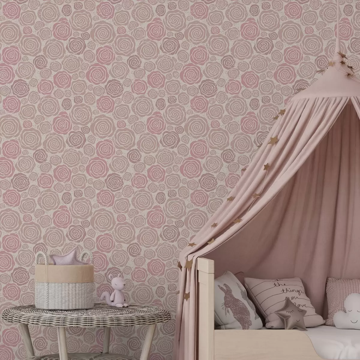 Papel pintado Rosas rosadas en espiral y salpicaduras sobre un fondo claro. Nr. a00955