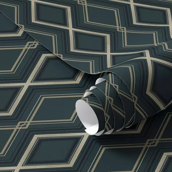 Papel pintado Fondo verde azulado oscuro con una rejilla de rombos repetitiva. Nr. a00975v1