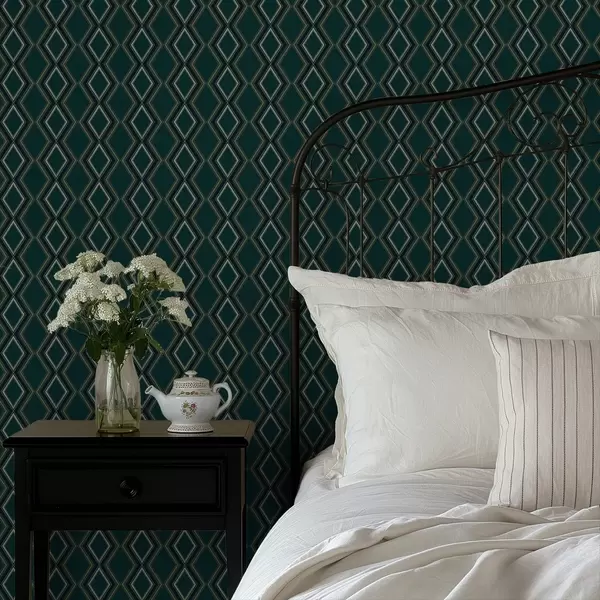 Papel pintado Fondo verde azulado oscuro con filas verticales de rombos. Nr. a00976