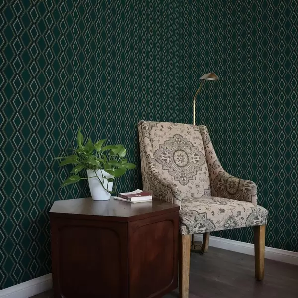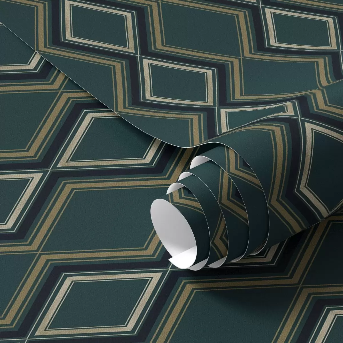 Papel pintado Fondo verde azulado oscuro con filas verticales de rombos. Nr. a00976