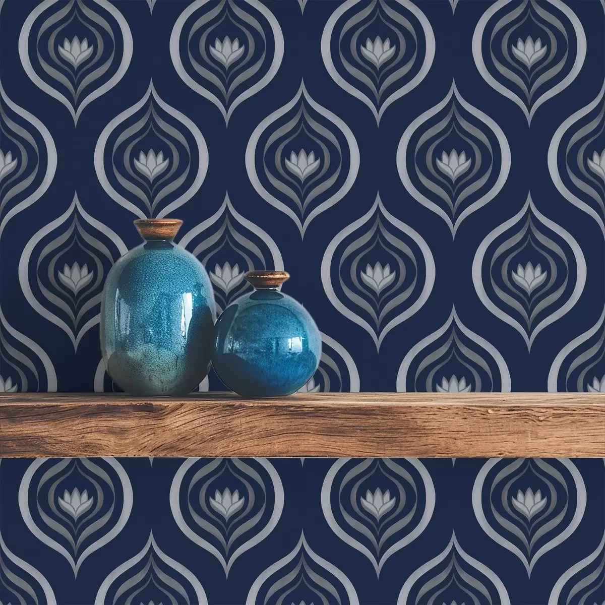 Papel pintado Motivos de gotas contrastantes con una flor sobre un fondo azul marino oscuro Nr. a00977v1