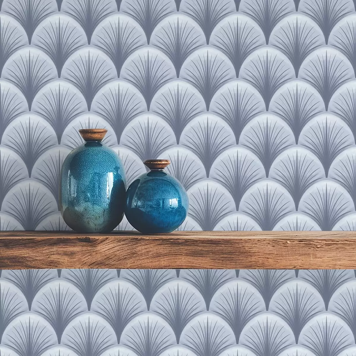Papel pintado Arcos azules con rayos sobre fondo azul claro. Nr. a00978v1
