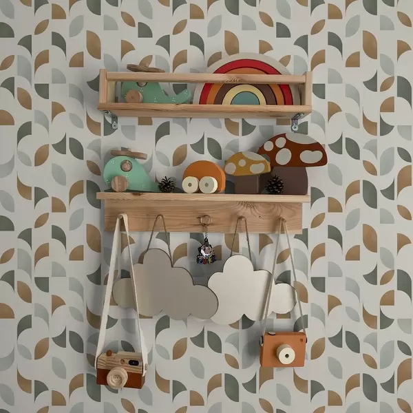Papel pintado Medios círculos y hojas abstractos en verde y terracota. Nr. a00985