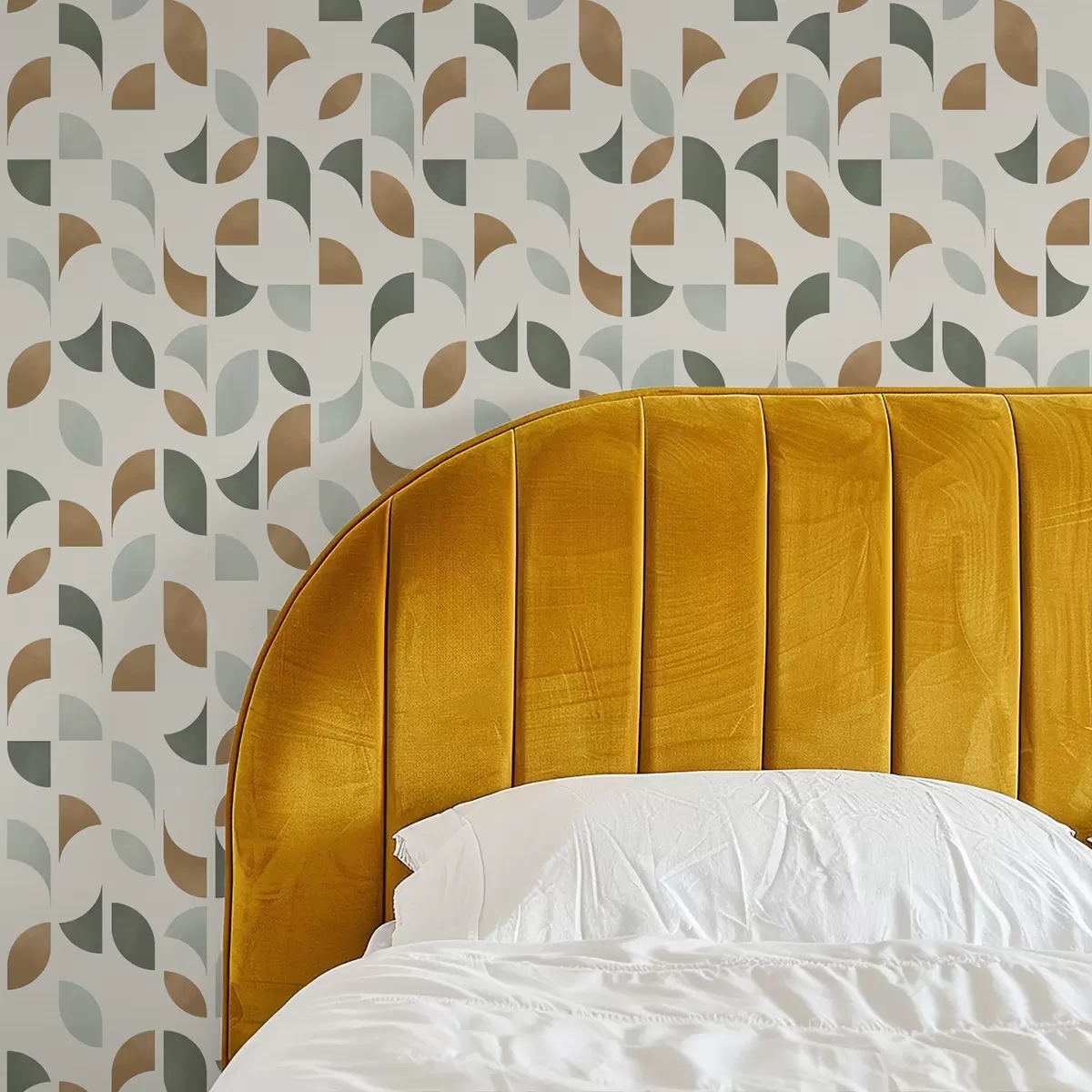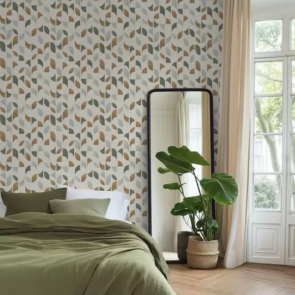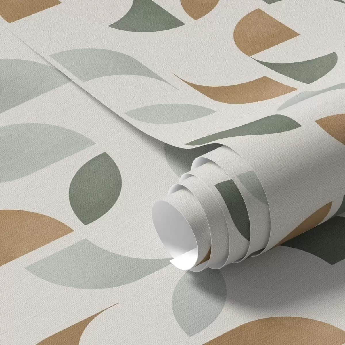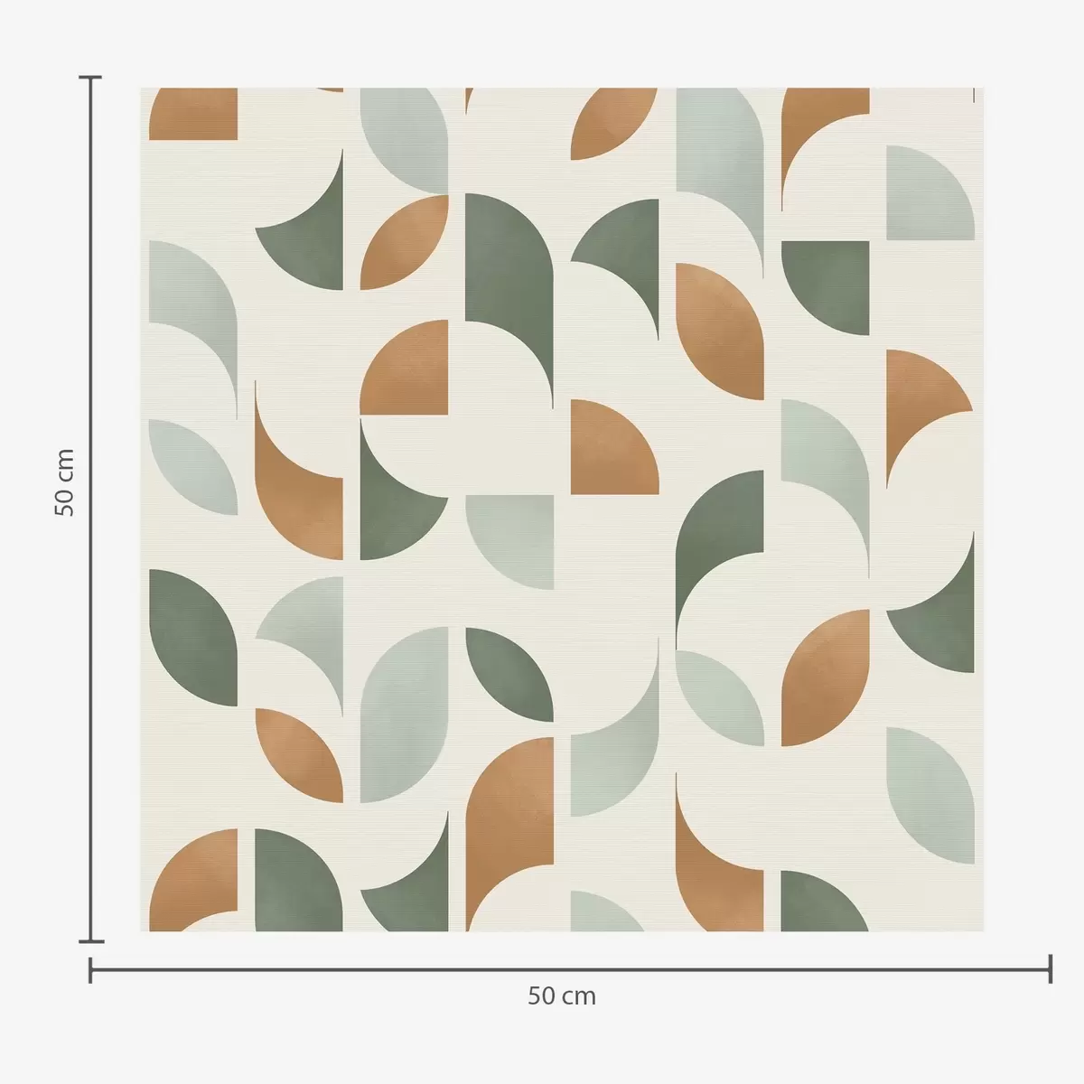 Papel pintado Medios círculos y hojas abstractos en verde y terracota. Nr. a00985