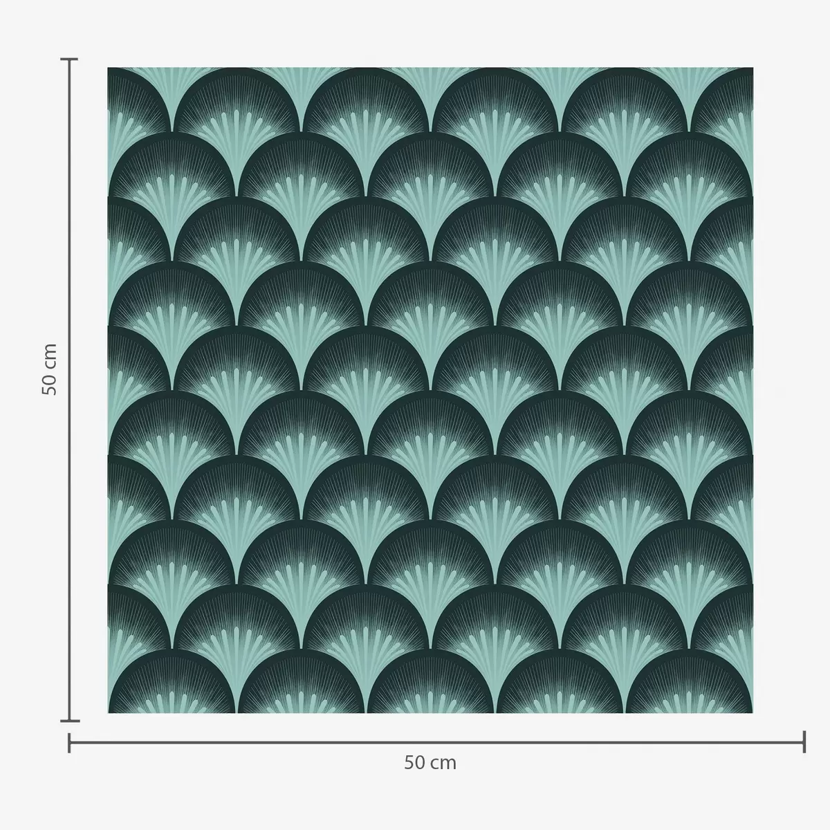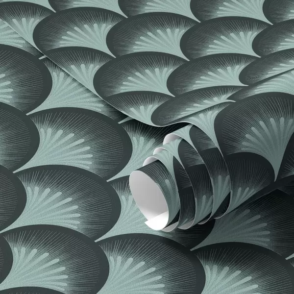 Papel pintado Contrastantes abanicos de menta sobre un fondo casi negro. Nr. a00990