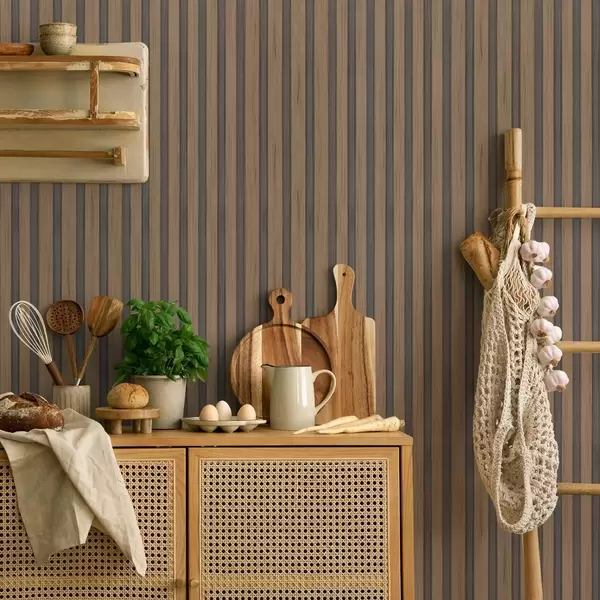 Papel pintado Lamas verticales de madera con inserciones gris oscuro Nr. a00991